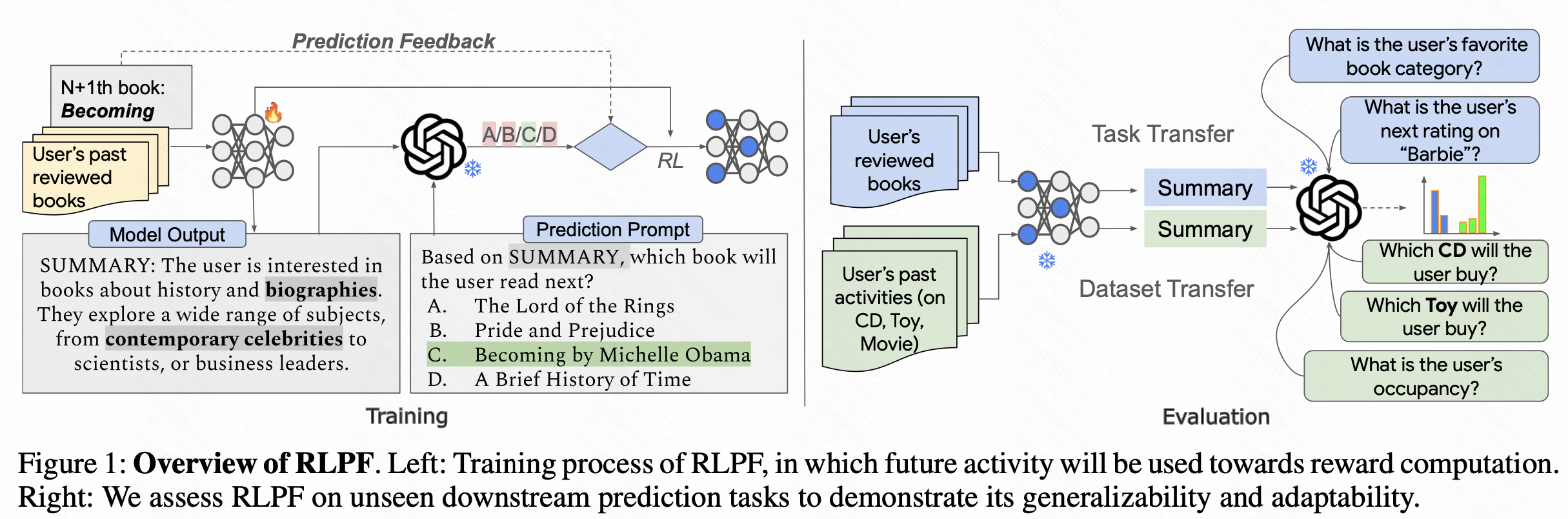 - RLPF: Reinforcement Learning from Prediction Feedback for User Summarization with LLMs